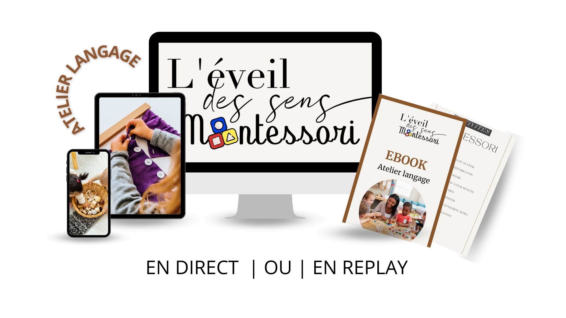 ✅ De plus tu repartiras avec les 5 activités langagières phares de la méthode montessori à reproduire simplement à la maison avec ton enfant (sans matériel)